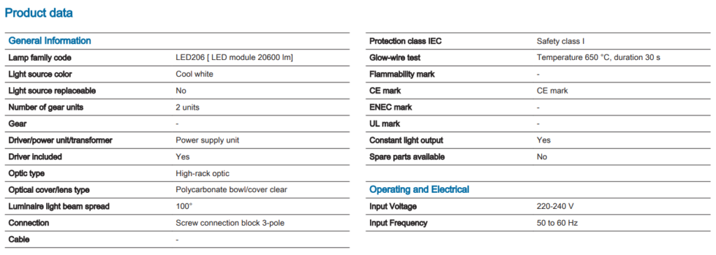 • Suitable for new builds or point-for-point replacement of HPI 250 W, HPL 400 W or HPI 400 W, reducing energy consumption by up to 60%