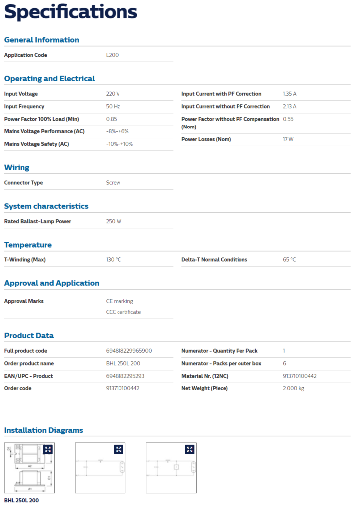 • HID basic ballasts should be restricted to built-in situations where relative humid is limited