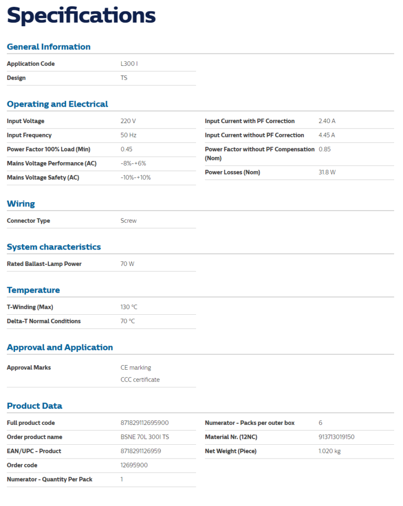 • For use with SON and HPI (PLUS) lamps in road, public, area and industry lighting