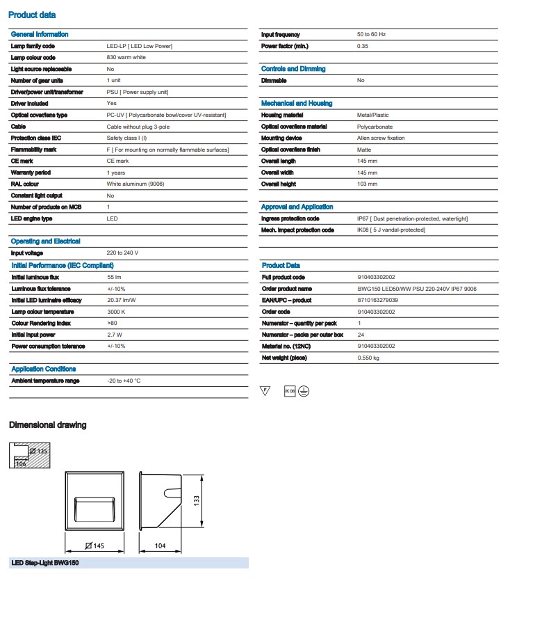 BWG150 LED50/WW PSU 220-240V IP67 9006