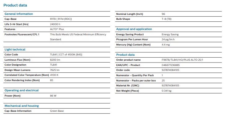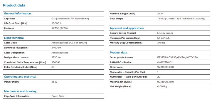 - Ideal for locations already using the linear Philips Energy Advantage 25WT8 lamp.