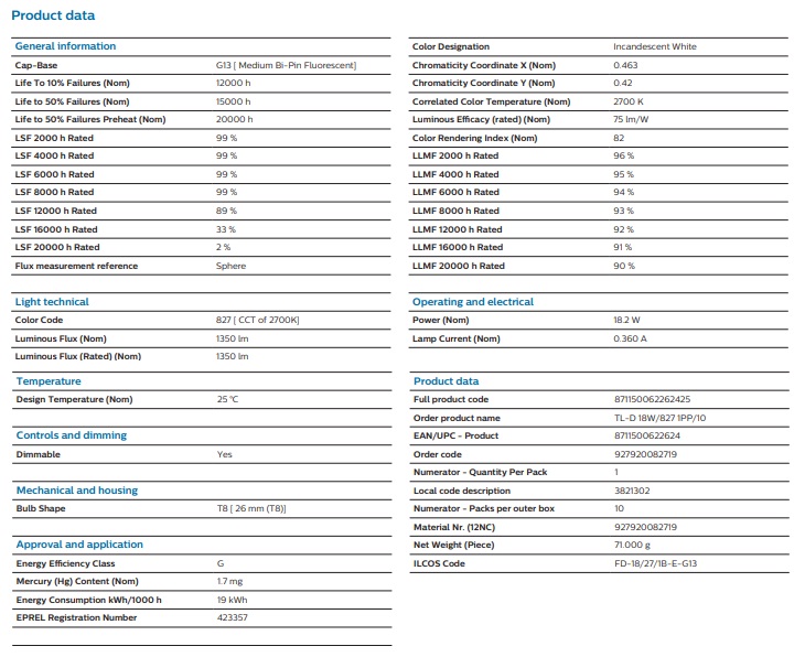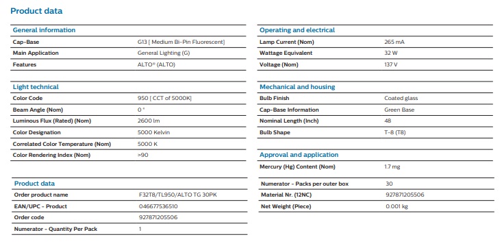 - Philips Energy AdvantageT8 U-Bent warranty period: 36 months.