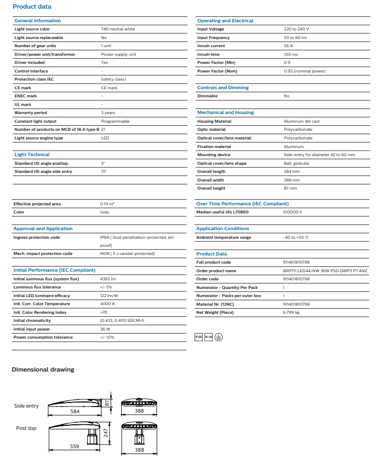At relatively low initial cost, the highly efficient LED-based UniStreet luminaire offers significant cost savings compared with conventional street lighting, ensuring full payback within a short period of time. Available in a choice of lumen packages, UniStreet allows point-to-point replacement of outdated conventional light sources and luminaires. The compact, slim luminaire is made of quality recyclable materials. And being a LED solution, it requires little maintenance.Core version design for high-volume projects at relatively low initial budget. Offer limited range of optics.Performer version design for customers who are preparing big renovation projects, TCO oriented.